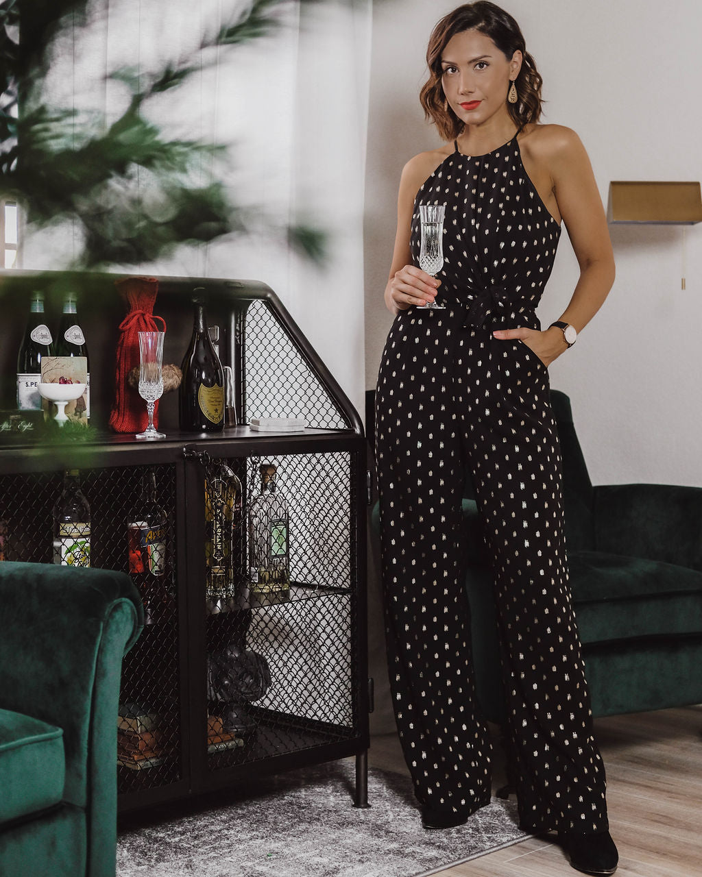 This holiday season I found the perfect jumpsuit for ringing in the new year. It’s such a classic piece, black with a beautiful festive pattern. It’s of course incredibly comfortable and so feminine and can be worn year round for cocktail parties, weddings, date night, or just a night out with the ladies.