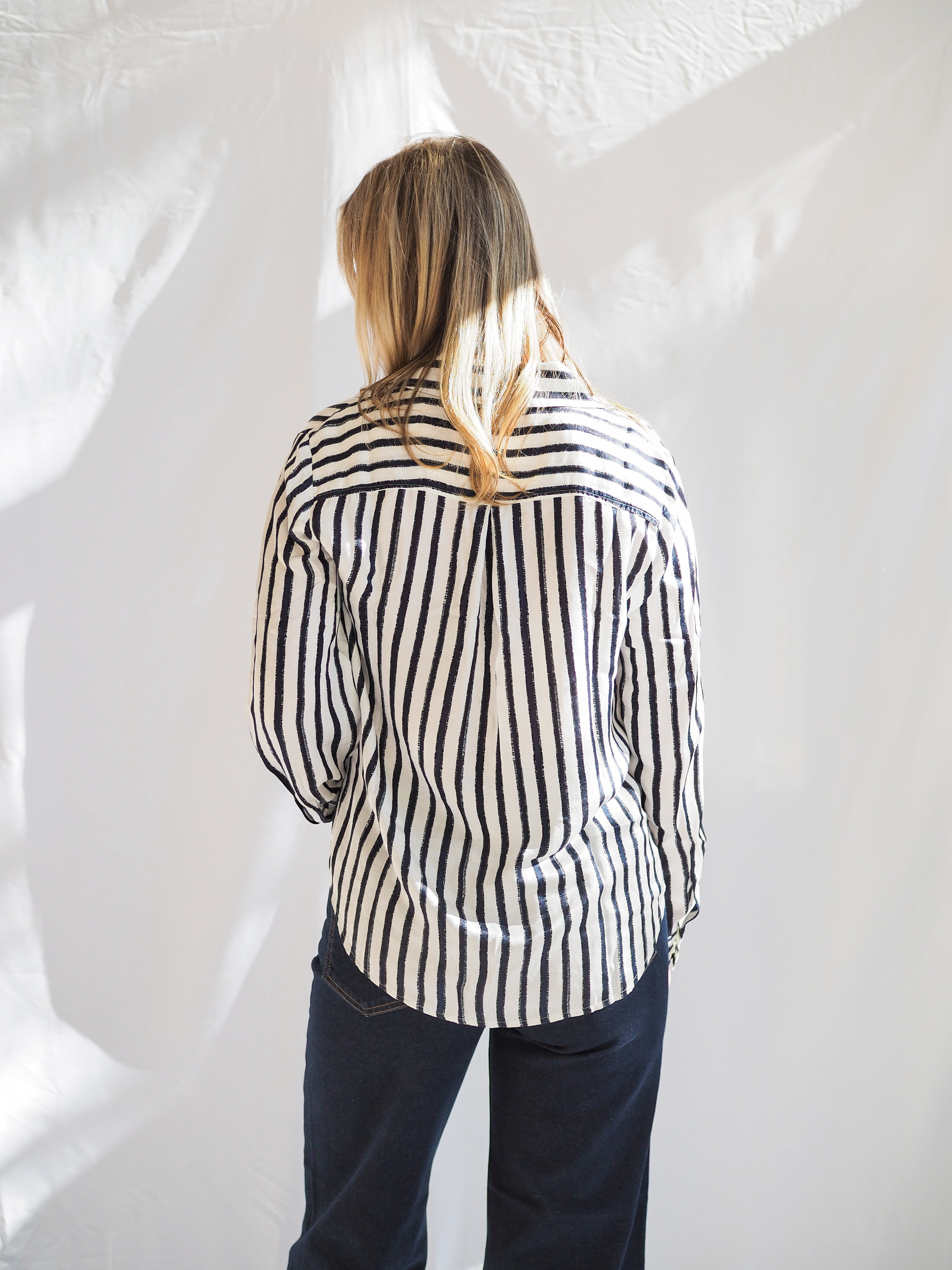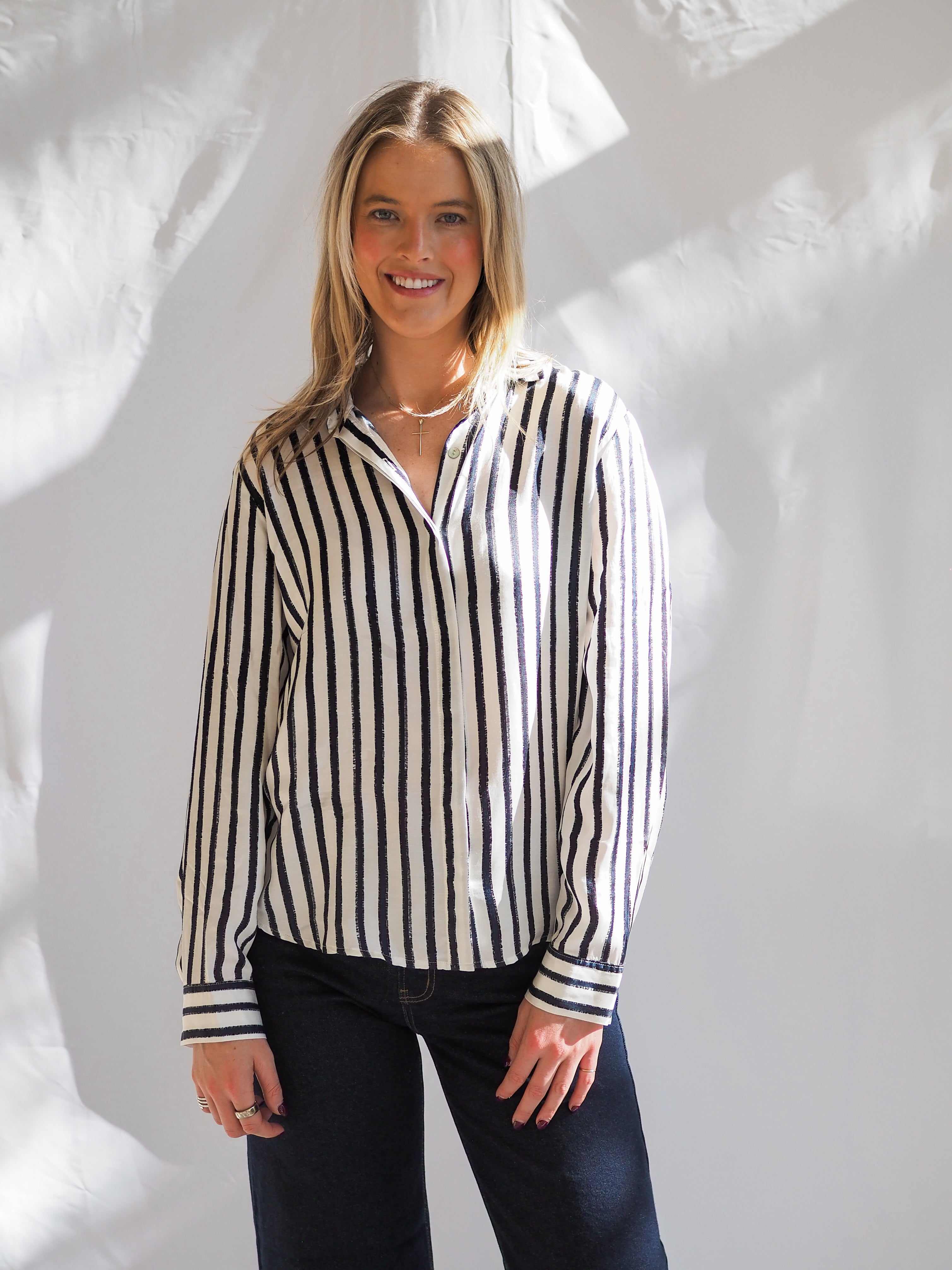 Relaxed yet refined, the Bella Dahl High Low Hem Stripe Button Down in Indigo Ink is the ultimate easy-luxe essential. Crafted from Bella Dahl’s signature soft fabric, this timeless button-down features a subtle stripe pattern, high-low hemline, and slightly oversized fit that drapes effortlessly. The deep indigo hue adds a modern touch, making it perfect for pairing with white denim, trousers, or layered under a sweater for transitional days.