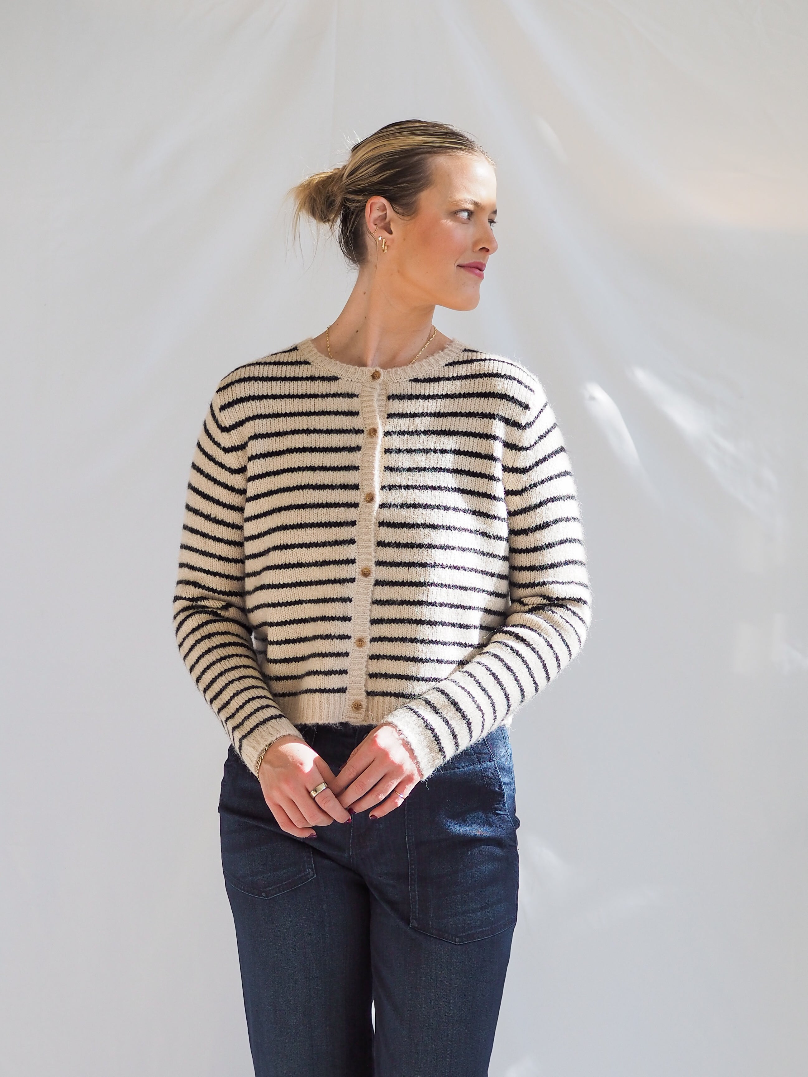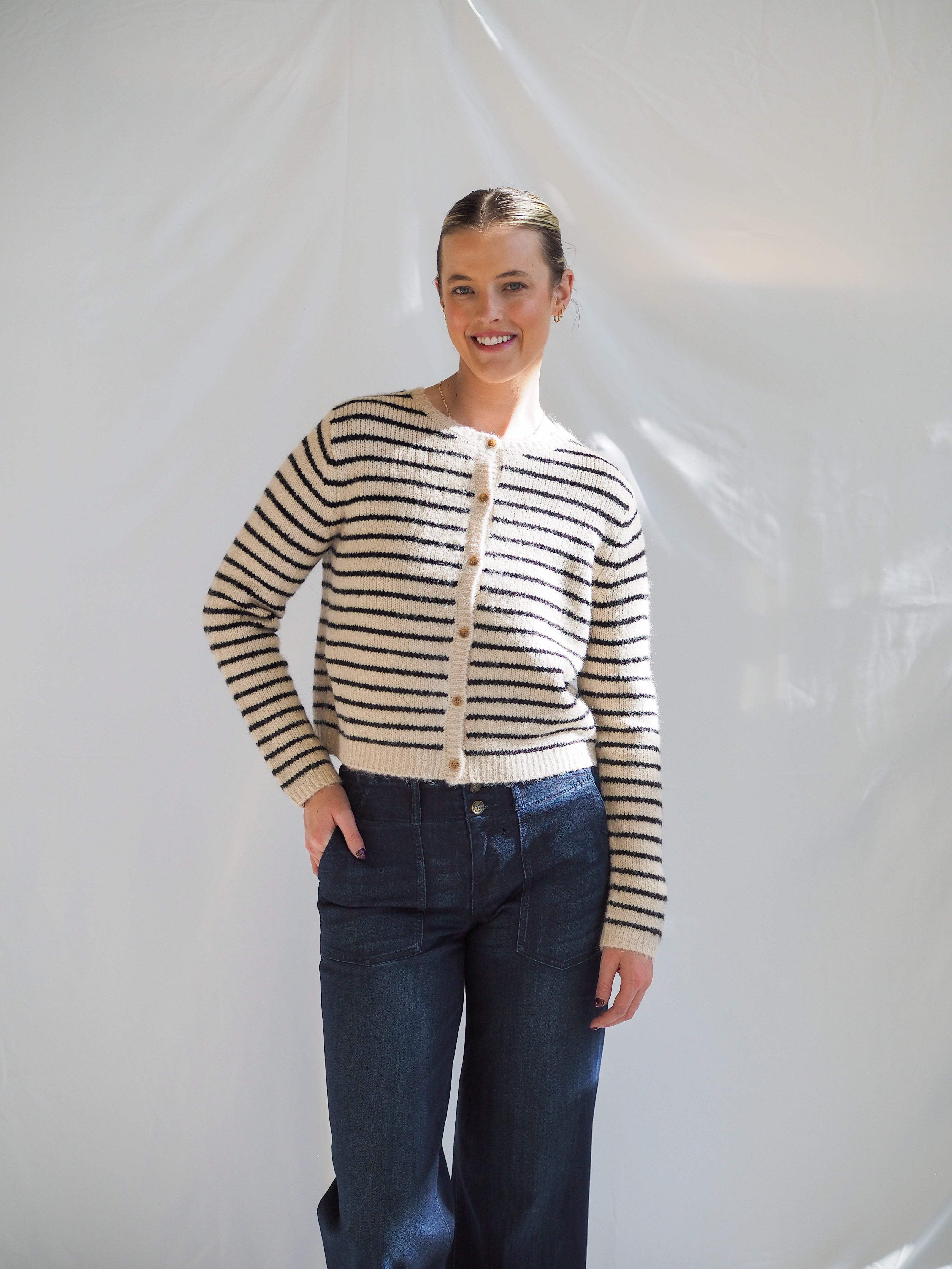 Relaxed, cozy, and elevated, the Crescent Riley Striped Button Down Cardigan Sweater brings a fresh feel to classic stripes. With its button-front design and versatile fit, it layers effortlessly over basics or stands on its own as a statement knit. The blend of acrylic, nylon, wool, and spandex offers softness with just the right amount of stretch, making it a must-have for easy styling through the seasons.