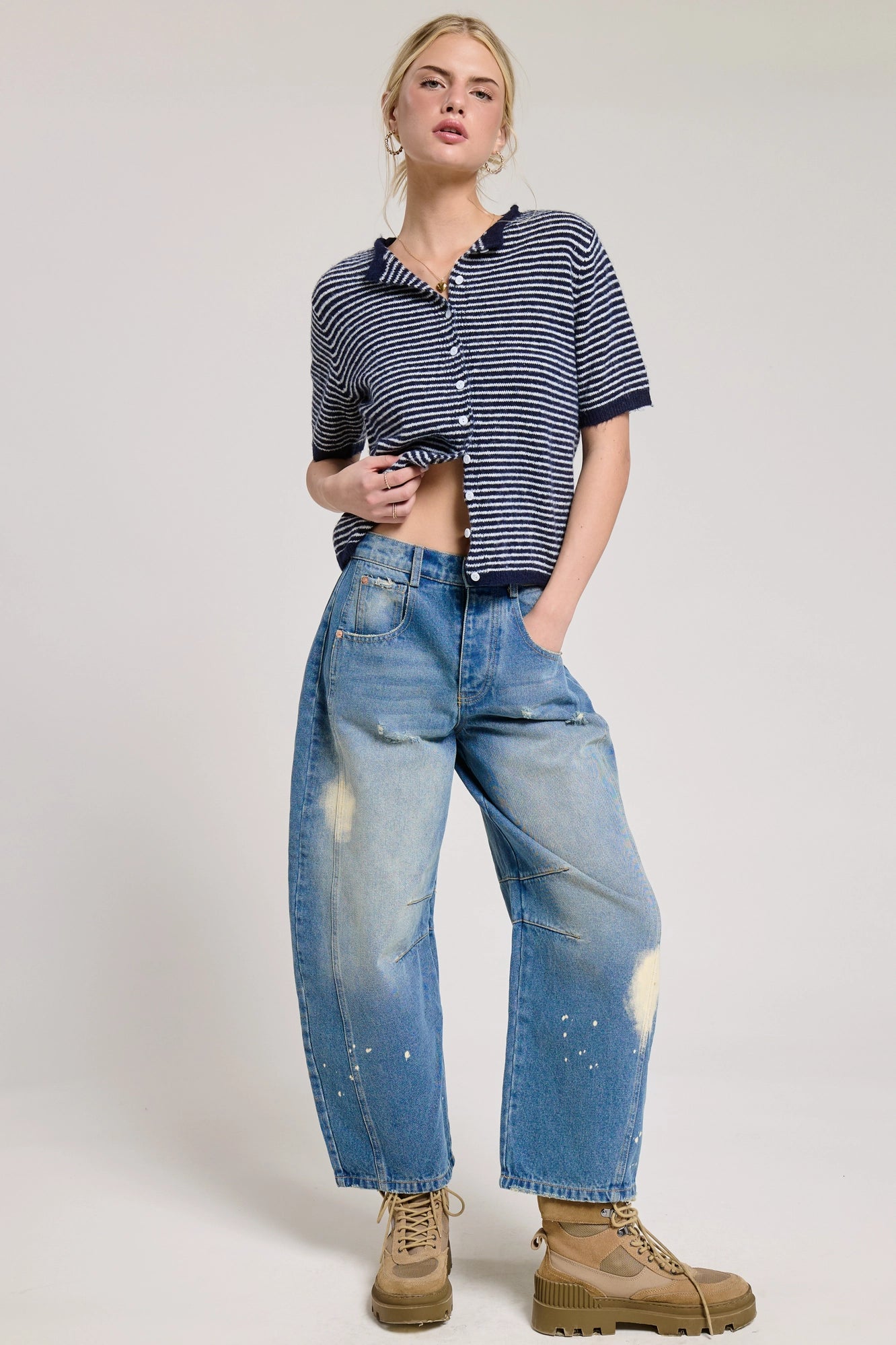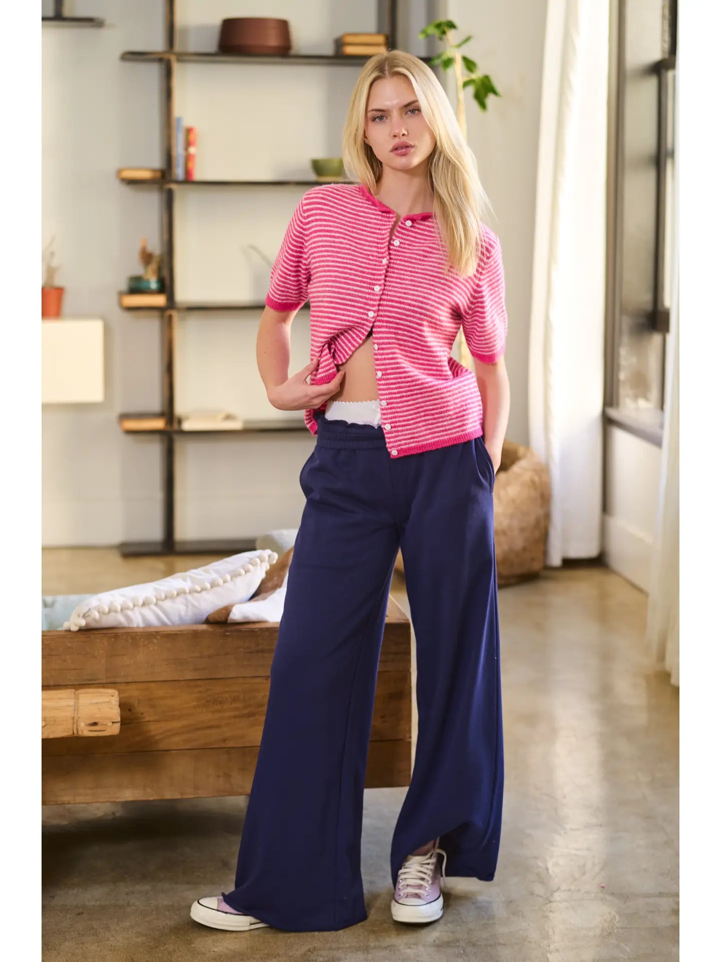 Throw on this striped short sleeve cardigan for instant versatility. Crafted from soft, breathable knit with a relaxed silhouette, it features a classic round neckline and tonal button-front closure. Wear it buttoned as a standalone top or drape it open over your favorite tank or dress for effortless layering magic. The lightweight fabric keeps you comfortable whether you're dressing up a casual day or adding polish to your everyday rotation. Perfect for transitioning between seasons with style and ease.