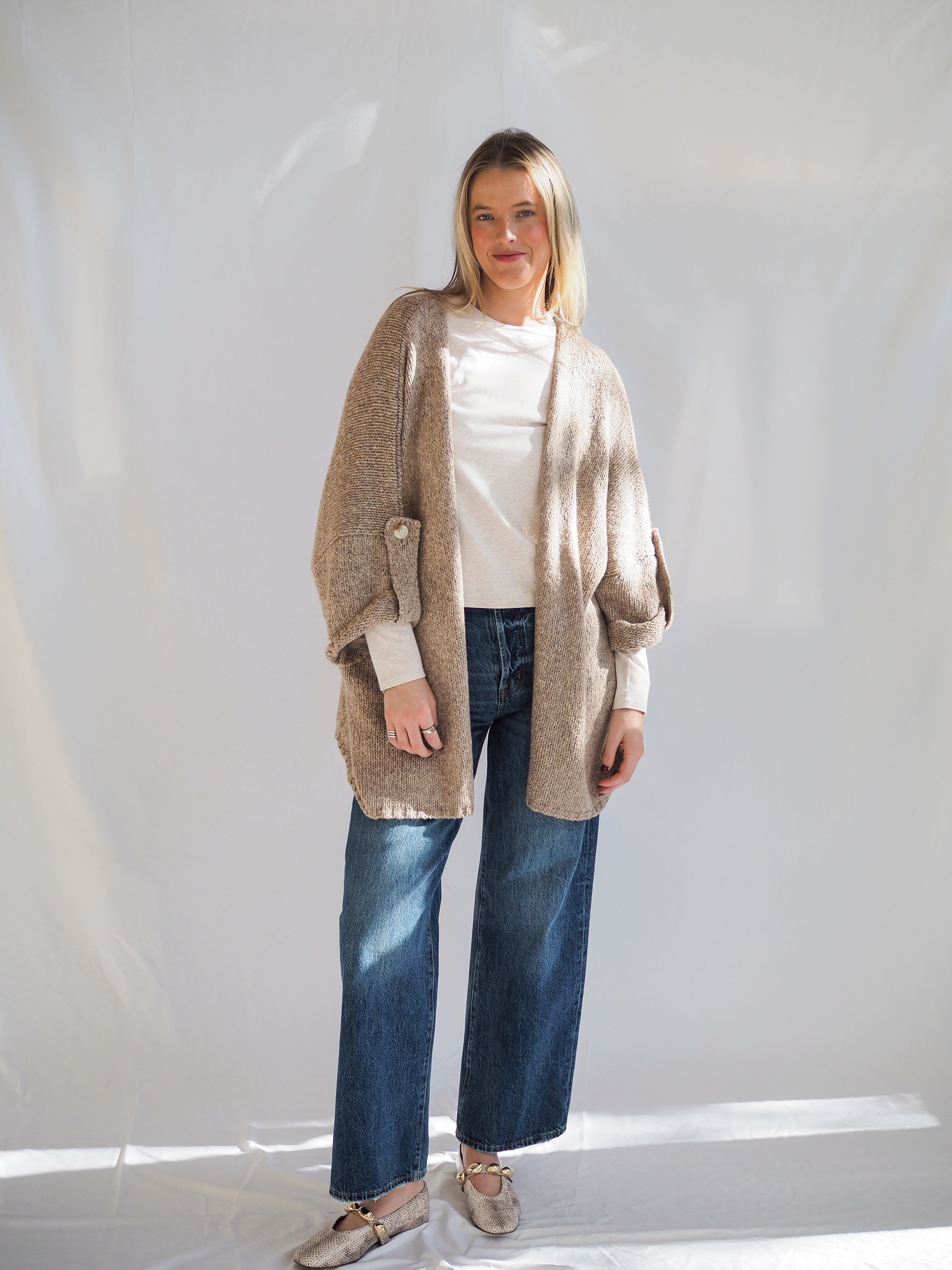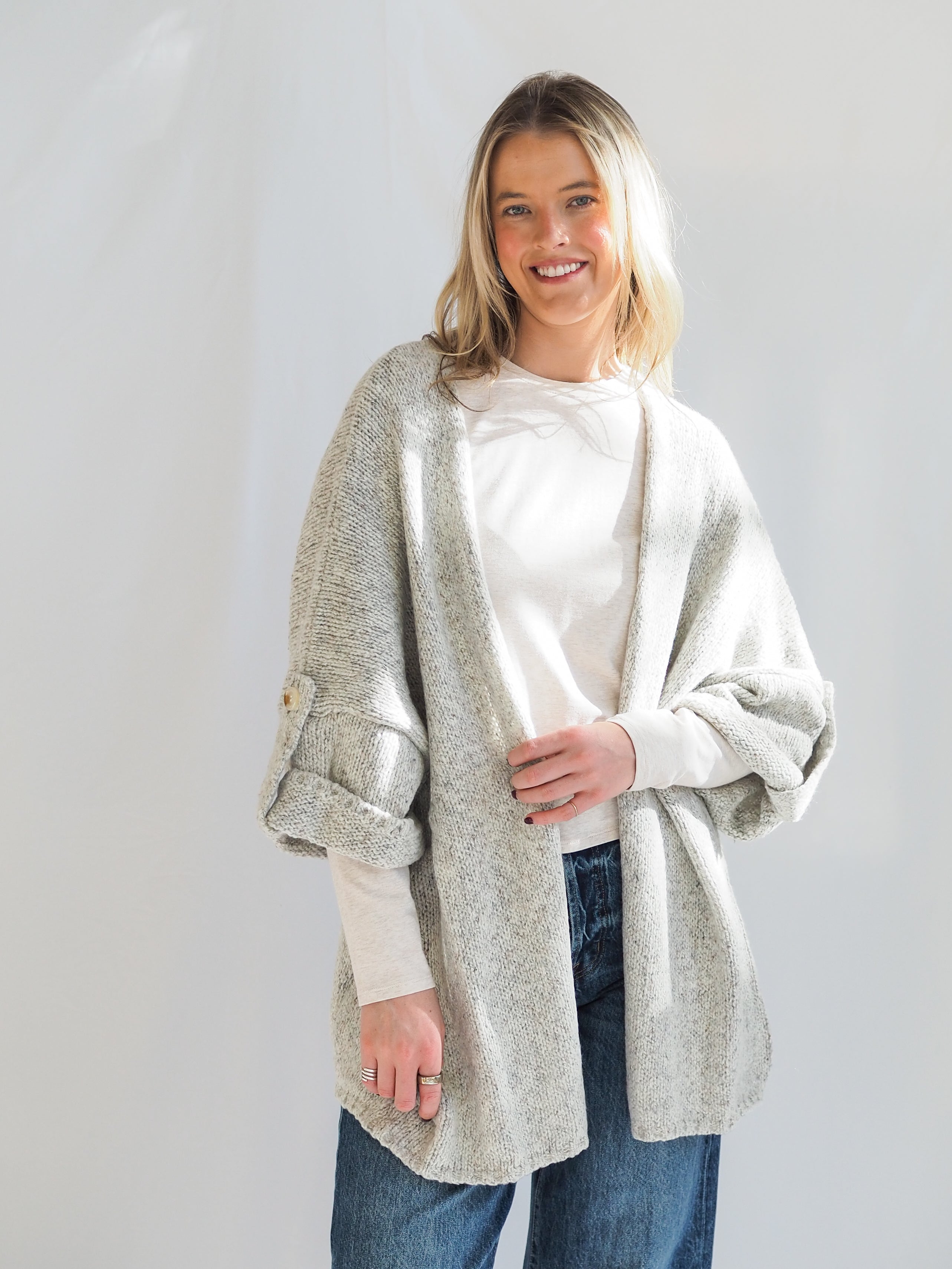 Wrap yourself in warmth and style with the Kenzie Knit Folded Quarter Sleeve Open Front Cardigan. Featuring chunky knit fabric and charming folded sleeves with button detail, it’s the perfect cozy layer for chilly days. Effortlessly cute and comfy, this cardigan adds a playful touch to any outfit.