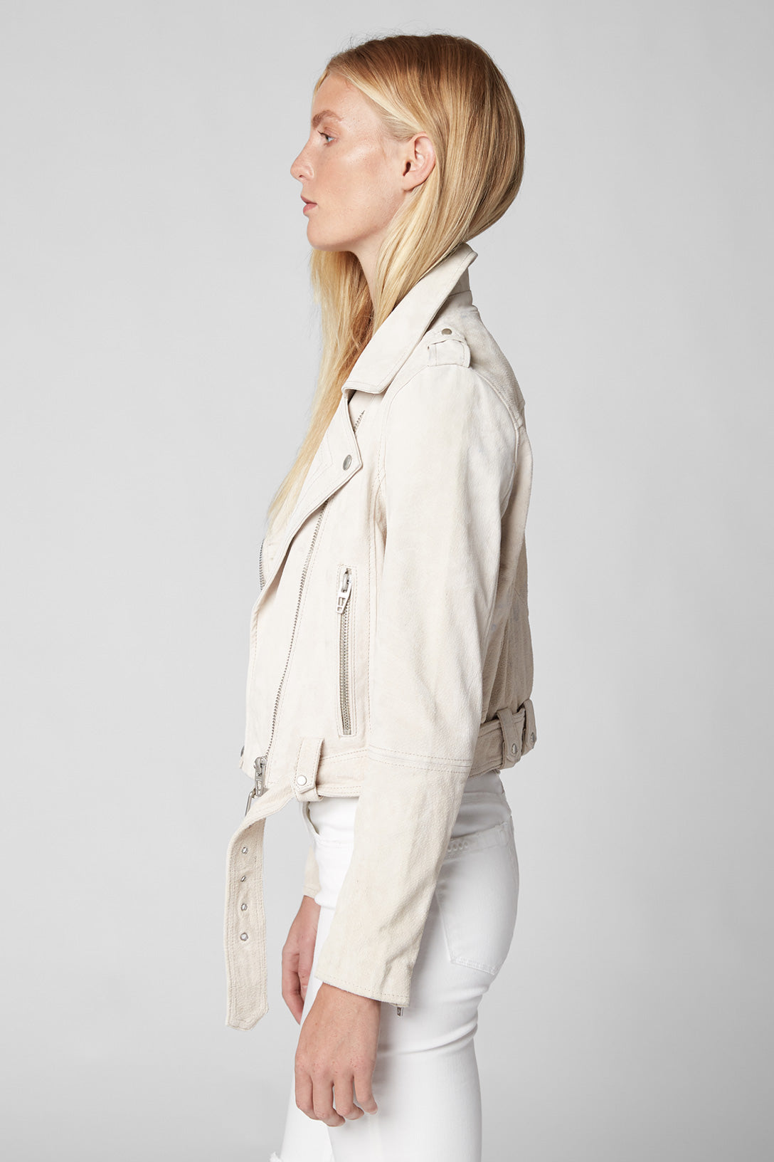 Elevate your edge with this BlankNYC cropped moto jacket—where tough-chic attitude meets buttery-soft suede. Rendered in luxe white sand, it's the perfect layer for pivoting from day to night with effortless cool. Supple and refined, this jacket brings that revved-up vibe without sacrificing comfort. Ready for adventure, styled for sophistication.