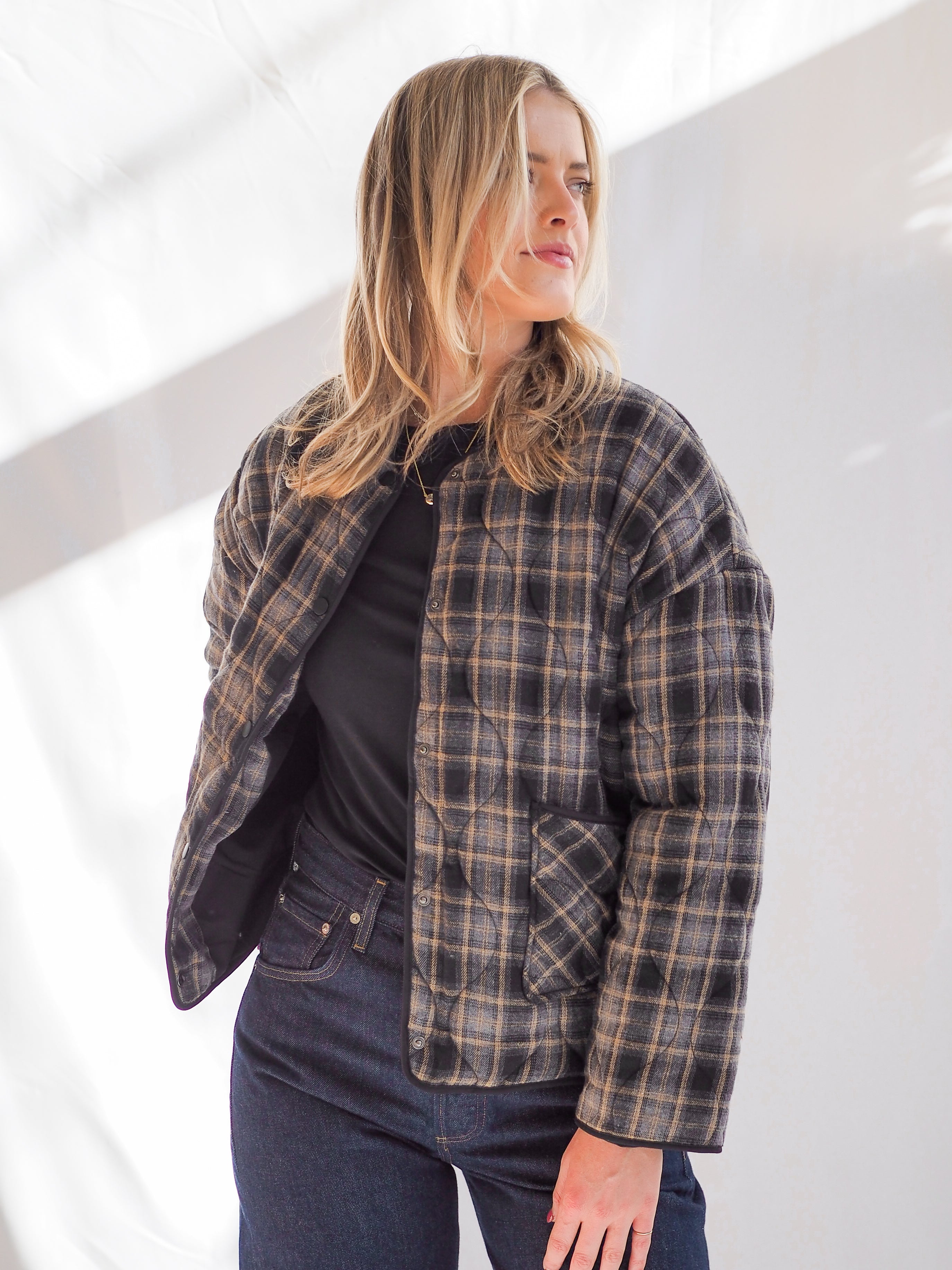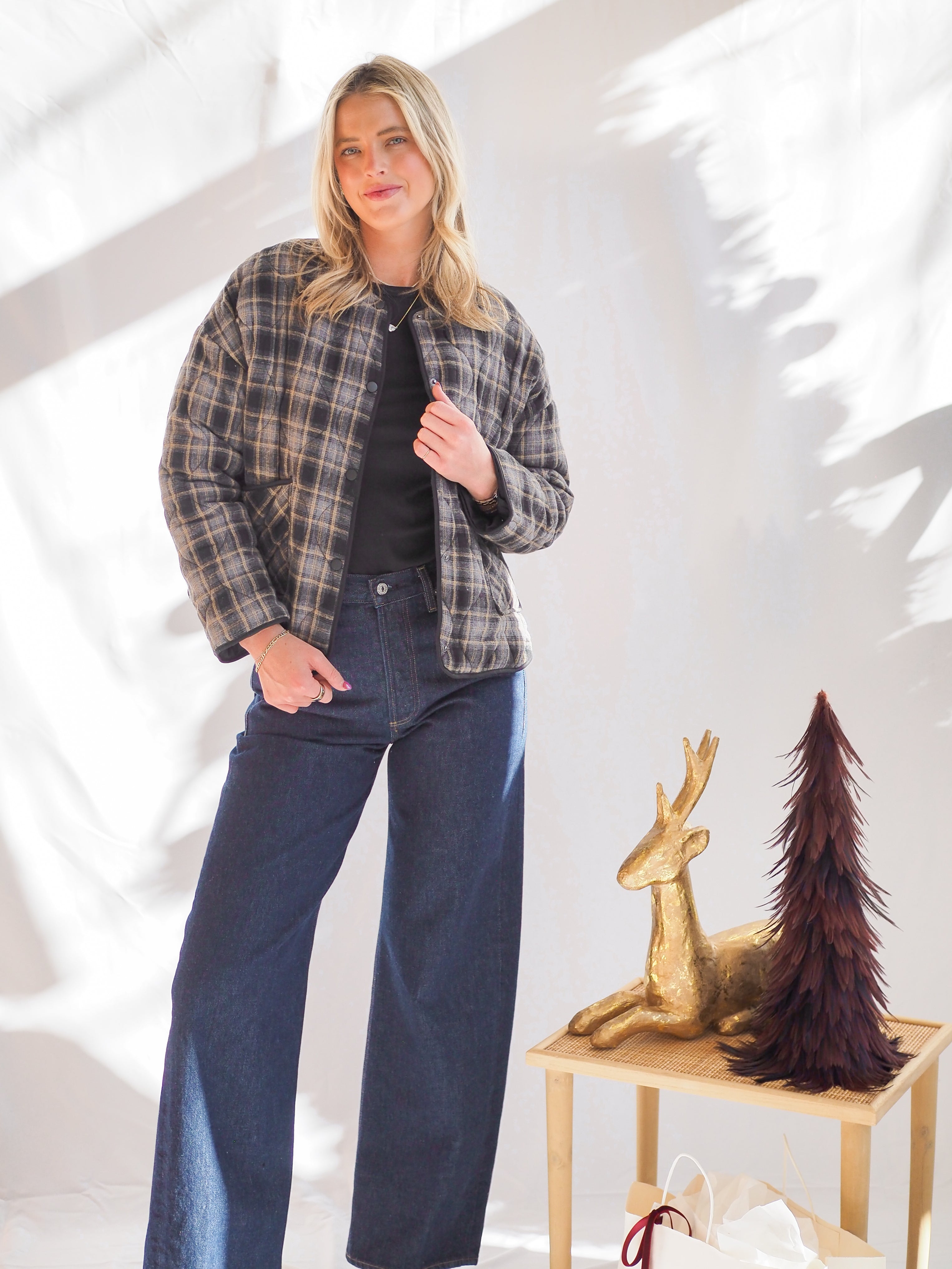 Warm, stylish, and effortlessly cozy, the Cropped Plaid Quilt Coat brings a fresh, modern twist to classic fall outerwear. Its quilted texture and cropped silhouette make it an easy statement layer—perfect for crisp mornings, holiday outings, or elevating a simple jeans-and-sweater combo.