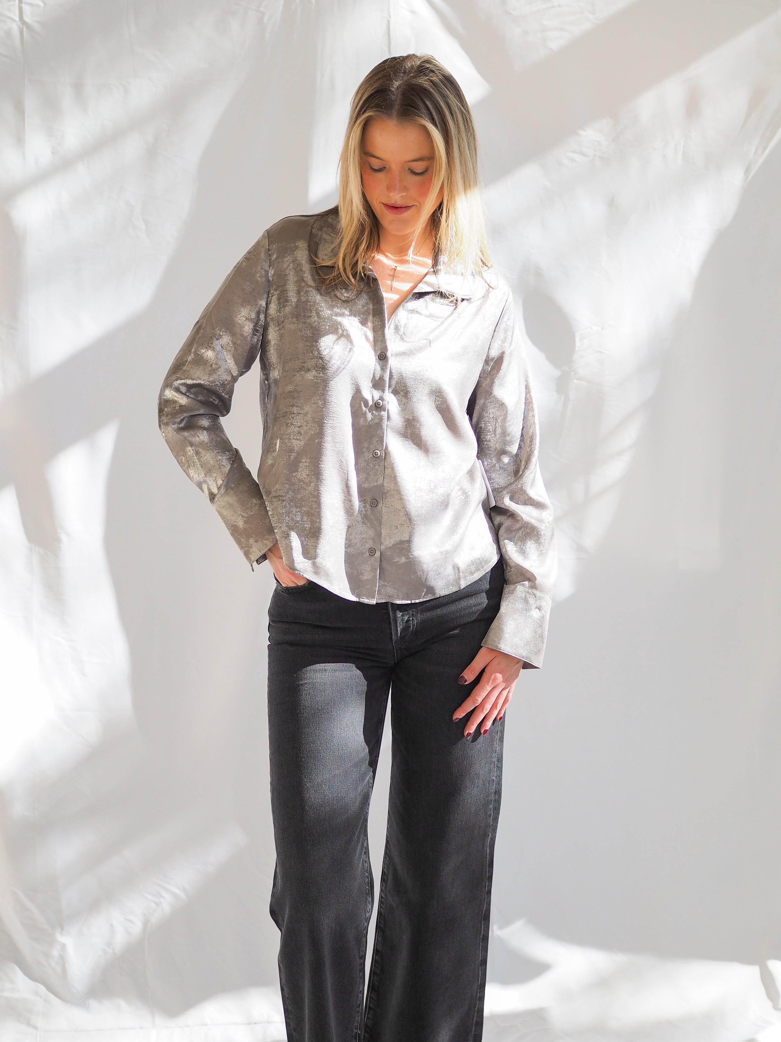 Sophisticated and effortlessly versatile, the Bella Dahl Wide Collar Button Down in Silver brings a modern twist to a classic silhouette. Made from Bella Dahl’s signature ultra-soft fabric, it features a relaxed fit, wide collar, and subtle sheen that elevates any look. The cool silver tone adds a touch of understated polish—perfect for pairing with trousers for the office or denim for an easy, off-duty vibe.