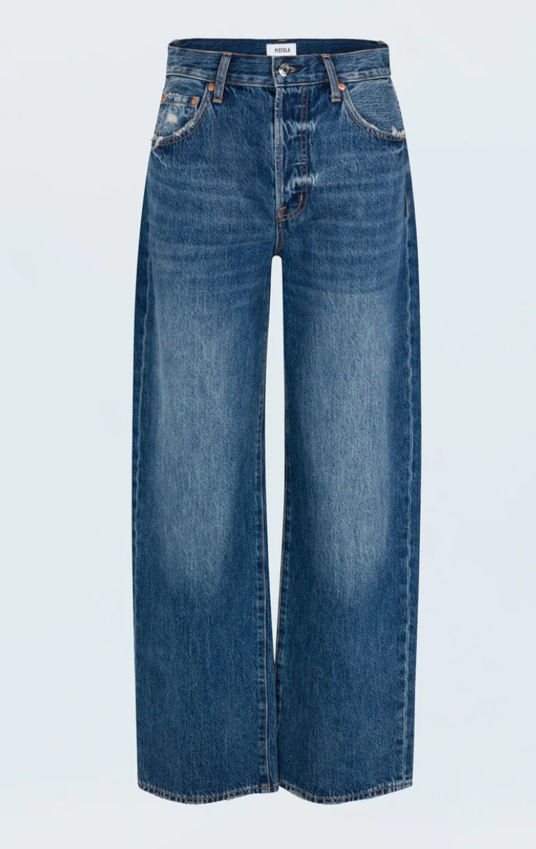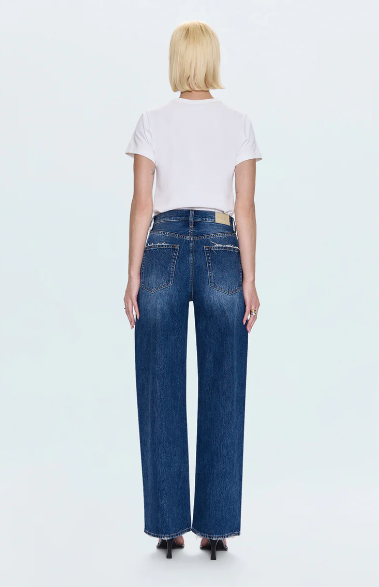Tate delivers the cool girl piece you've been waiting for—a modern denim fit that redefines effortless style. Sitting at a high rise with our signature bowed wide leg silhouette and full-length 32" inseam, this new fit brings trouser sophistication to the classic five-pocket jean. The subtle curve through the leg adds dimension while the wide opening brings modern proportion to any look. Crafted from 100% cotton non-stretch denim in Fulton, a classic blue wash that feels both timeless and contemporary.