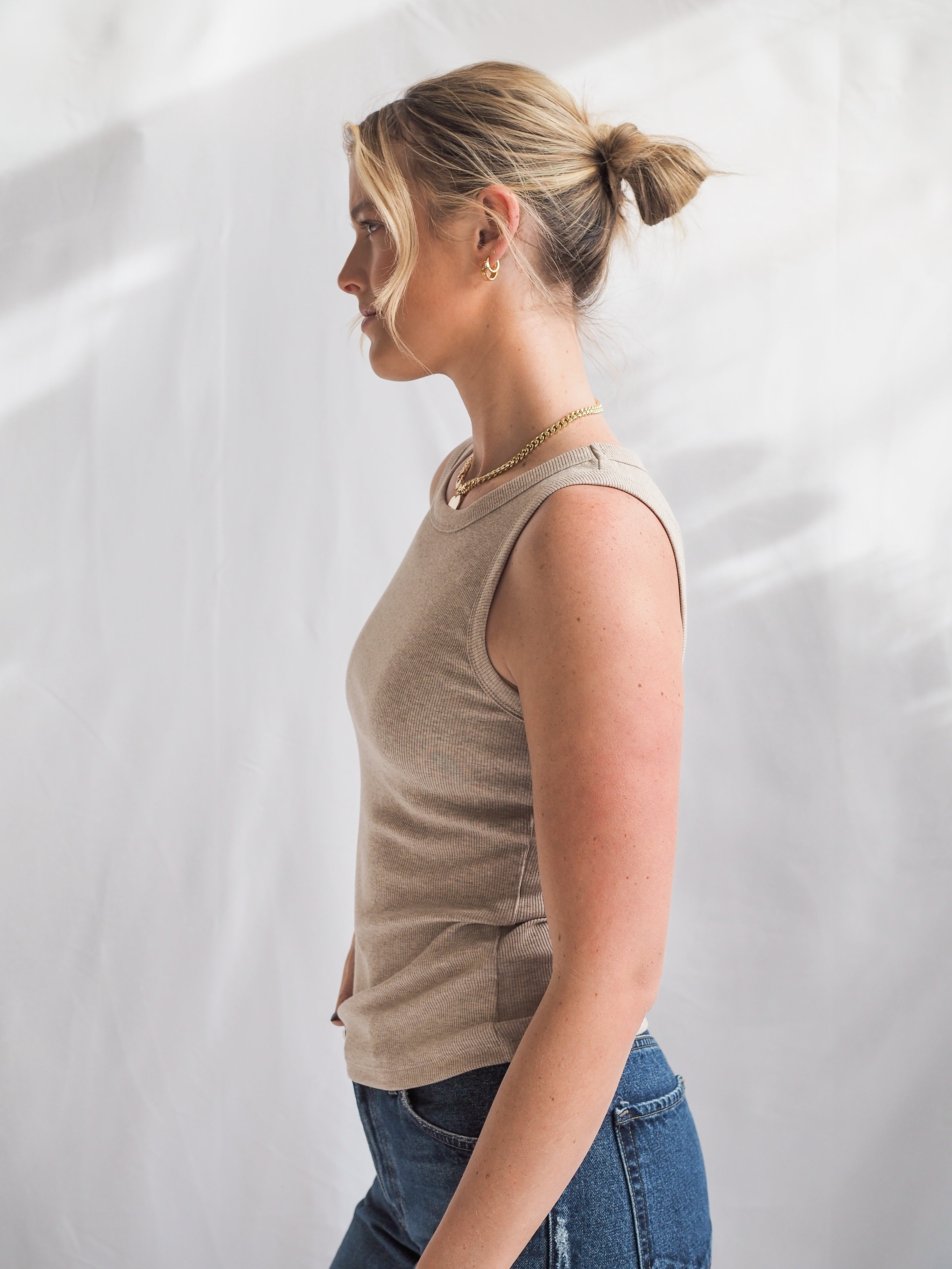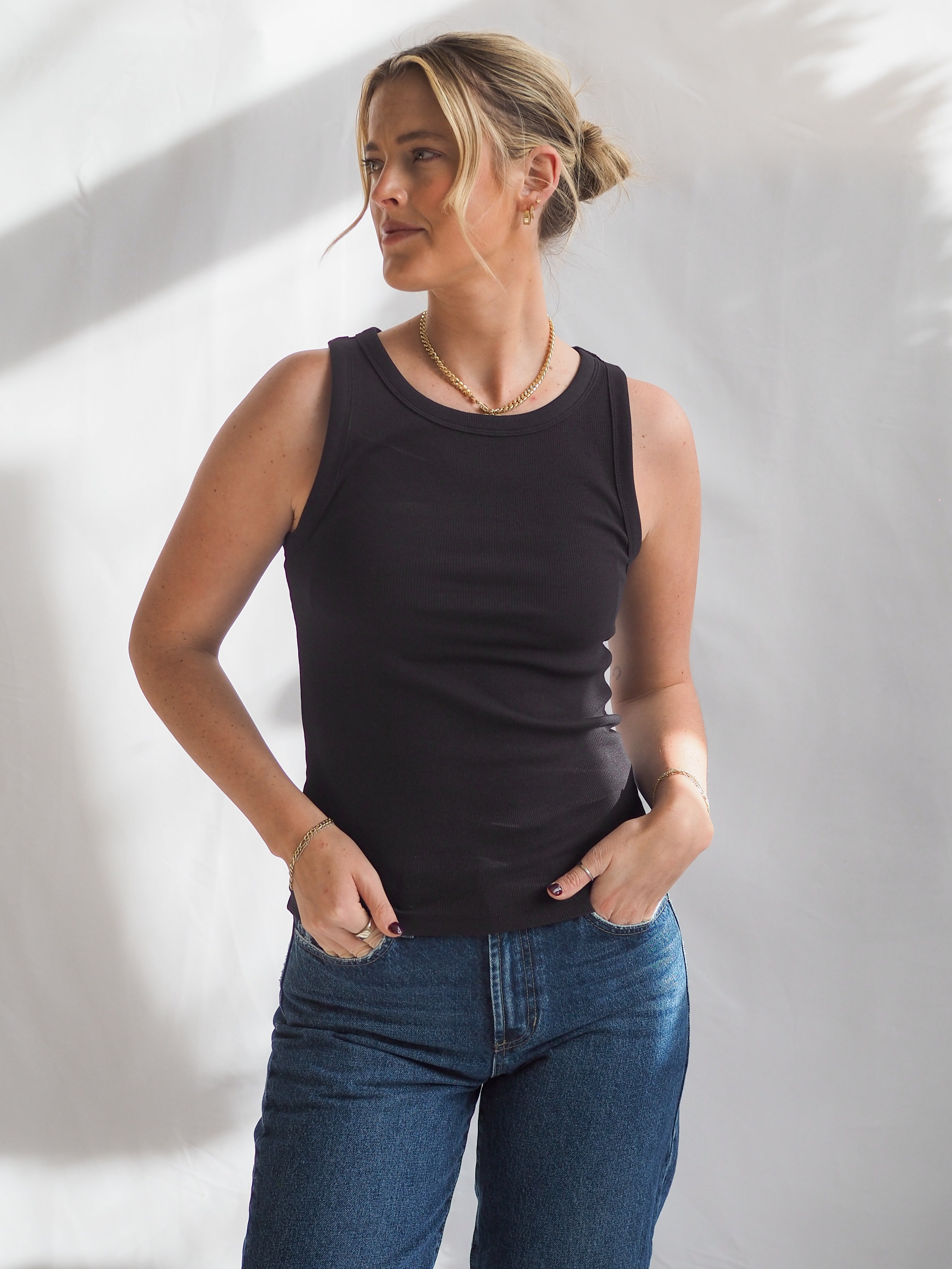 Simple, sleek, and endlessly versatile, the Edlin Ribbed Tank is the everyday essential you’ll reach for year-round. Its soft ribbed texture and flattering, close-to-body fit make it perfect for layering under sweaters and jackets or wearing solo on milder days. A true wardrobe foundation piece.